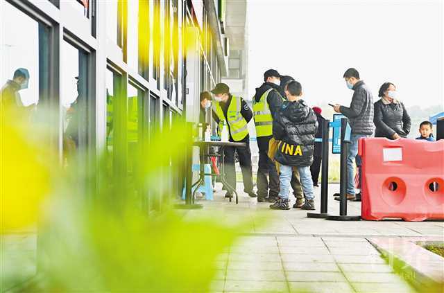二月二日,沪蓉高速梁平龙溪河服务区工作人员坚守岗位,查验游客健康码、行程码。首席记者 龙帆 摄\视觉重庆