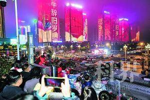 1月29日晚,观山湖区在贵州金融城上演了一场绚丽多彩的灯光秀,为虎年新春增添了更多年味。当晚7点,贵州金融城流光溢彩、灯光璀璨,“祝全市人民新春快乐”“金牛辞旧岁 瑞虎踏歌来”“爽爽贵阳·美美观山湖欢迎您”等字样在楼宇幕墙上循环播放,向广大市民送上新春祝福。 通讯员 张婷 王明元 摄