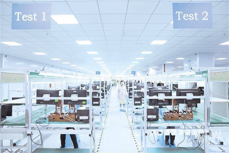 云岩区协同创新工业集中发展区贵州芯火悦创科技有限公司车间工人正在作业。