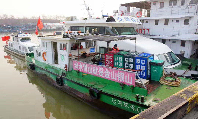 记者在京杭大运河顺堤河作业区看到,一艘多功能接收船正在发挥“水上垃圾站”的功能,运河中行驶往来的货船船员频频伸手示意,有的船上需要回收的仅是生活垃圾,有的则需要回收生活污水。