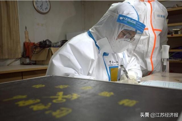 常州海关口岸疫情防控封闭专班成员曹意开展流调工作。王 伟 摄