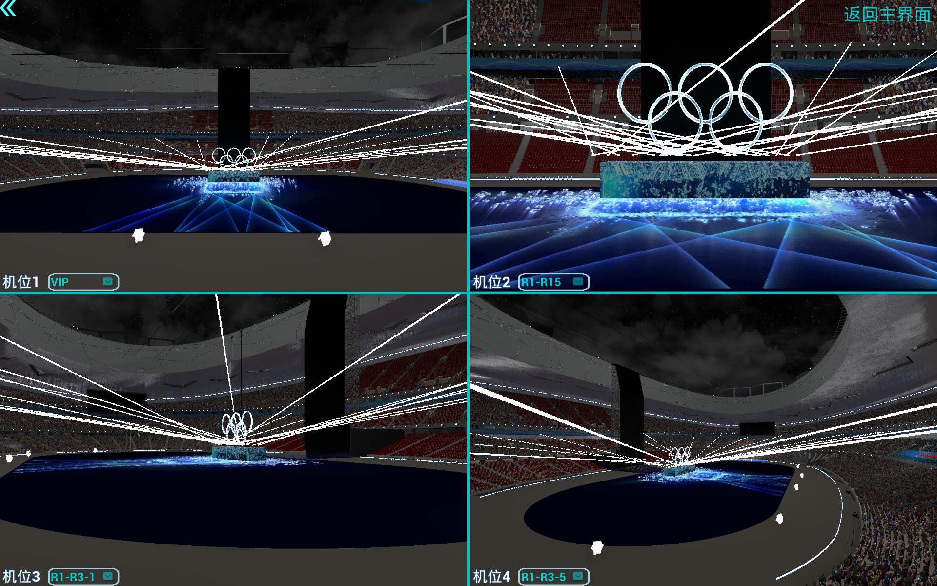 (五环展示时多机位镜头模拟效果)
