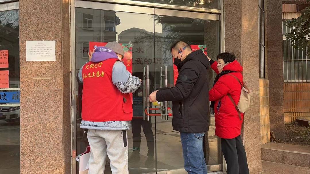 活动中,社区网格员带领志愿者们,拿着由泉山区政法委赠送社区的500余张精美的福字,在小区内宣传栏、楼栋单元门贴“福”字,宣传网格化社会治理服务的同时,将喜庆祥和送到社区内的每个角落,给居民们带来了最美好的新春祝福。
