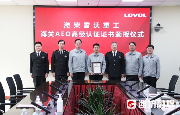 日前,在潍柴雷沃重工举行的海关AEO高级认证企业颁证仪式上,潍坊海关关长将海关AEO高级认证企业证书正式授予潍柴雷沃重工。在海外疫情严峻的形势下,潍柴雷沃重工出口业务发展保持强劲势头,这份全球贸易“绿色通行证”的获得,将为其持续深耕国际市场注入新动能。