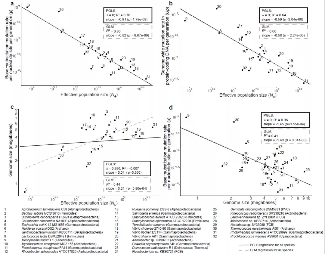 核生物基因组大小(G)、碱基替换速率(μ)、全基因组突变速率(Up)、有效种群数量(Ne)之间的相互关系(厦门大学供图)