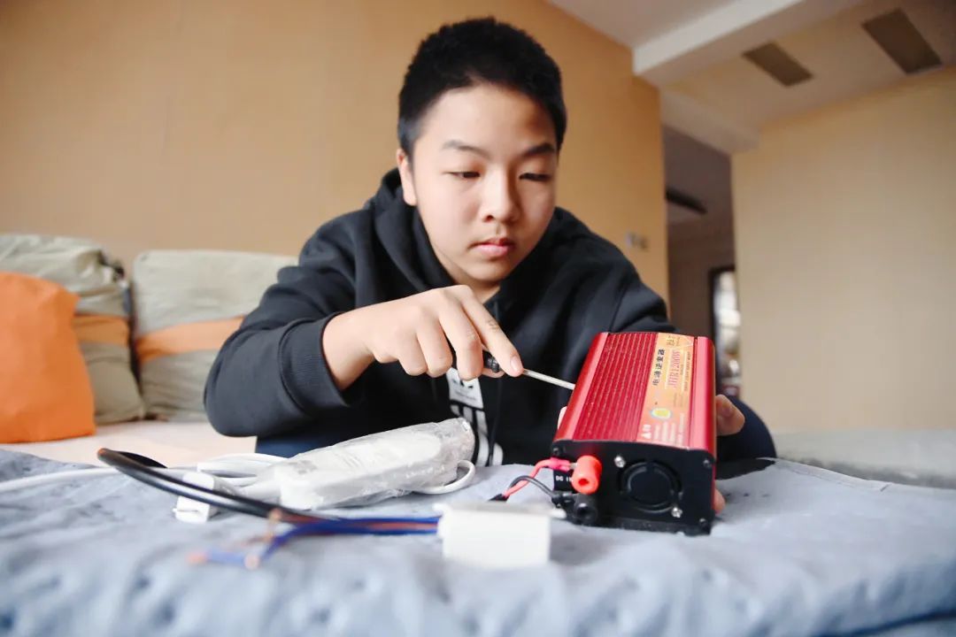 魏紫洋和爸爸在网络上通过大量搜索,终于找到了一款电压逆变器,可以将24或48伏的电压逆变成220伏的电压。