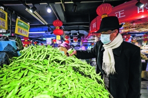 2022年春节前夕,观山湖区合力惠民生鲜超市内蔬菜供应充足,吸引市民前来采购。