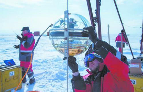 俄罗斯研究人员在建设贝加尔湖深水中微子望远镜。 图片来源:俄罗斯卫星通讯社