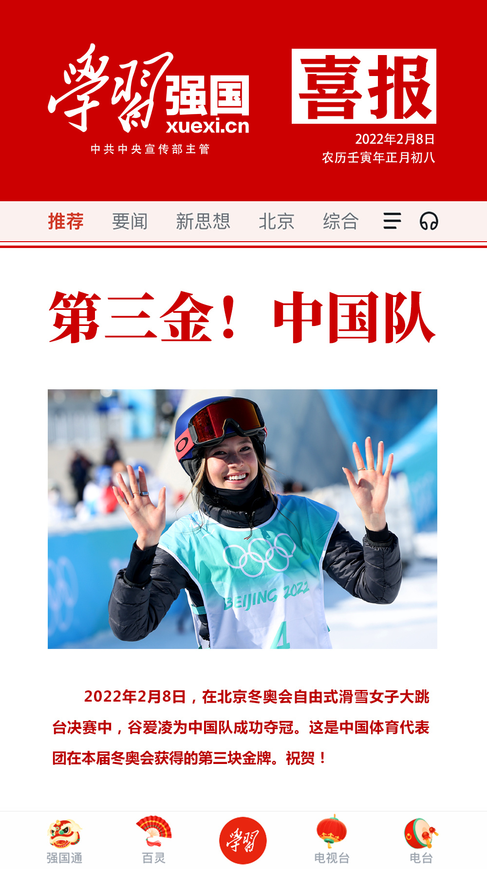 喜报:谷爱凌获自由式滑雪女子大跳台决赛金牌