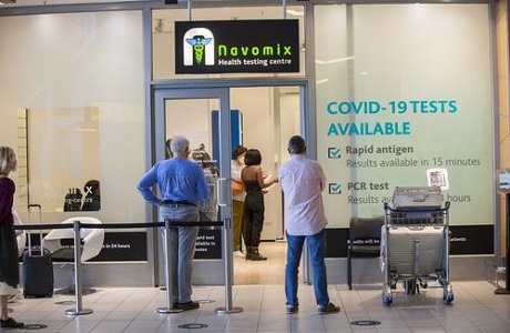 图为11月29日,旅客在南非开普敦国际机场等待接受新冠病毒检测。
