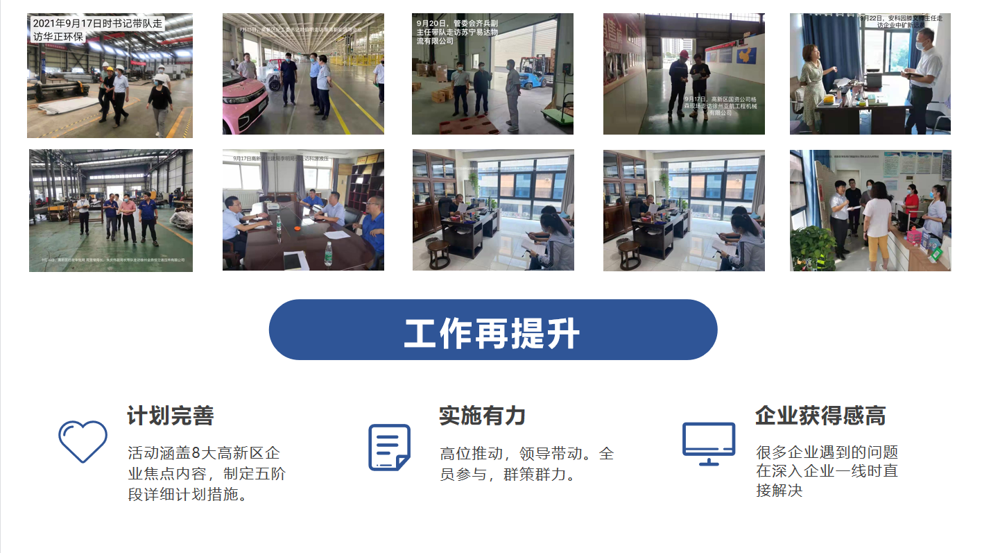 为进一步推进高新区营商环境建设工作,更好地为企业做好事、做实事,徐州高新区积极征求企业对高新区的意见建议,落实各项惠企政策,切实帮助企业解决生产经营困难,进一步提振企业家信心,保持经济平稳健康发展。