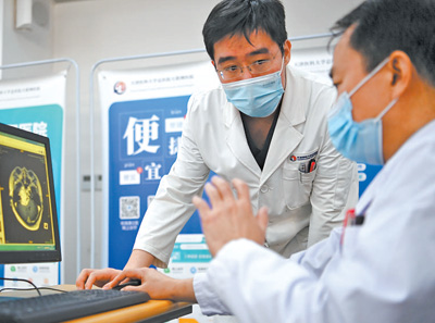 近年来,天津医科大学总医院已开通线上复诊、专病管家、数字胶片“云影像”等近20项线上服务。图为医生通过电脑调阅患者影像检查结果进行商讨。