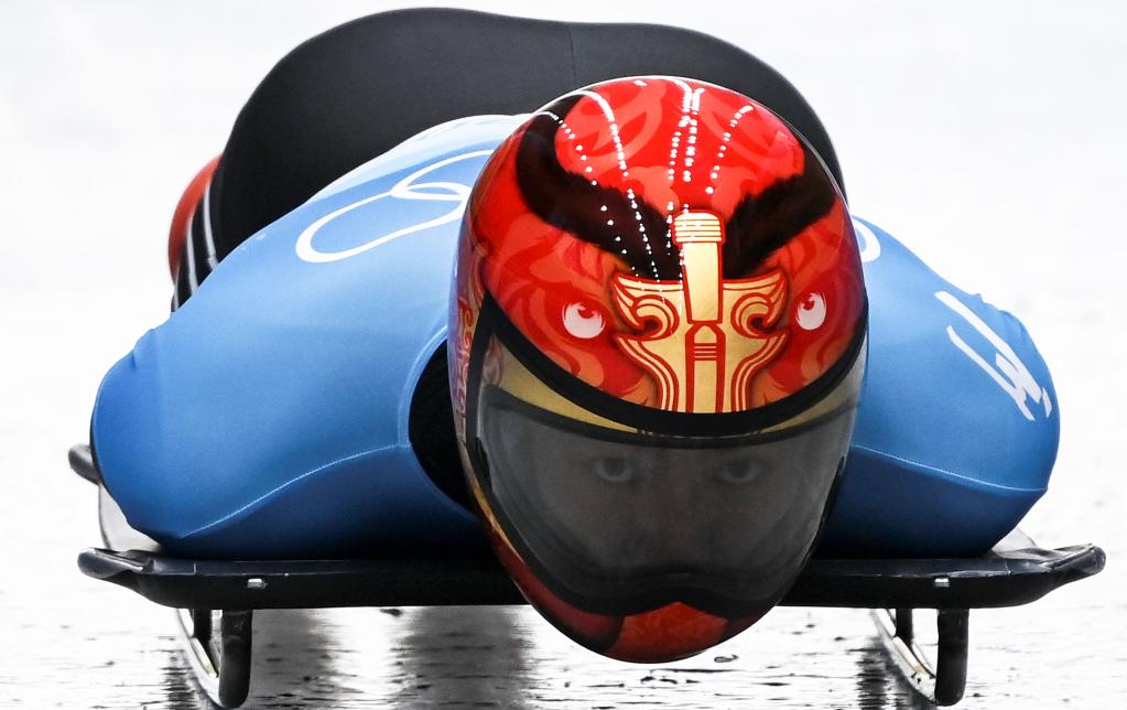 2月10日,中国选手殷正在北京冬奥会男子钢架雪车项目比赛中。新华社记者贺长山摄