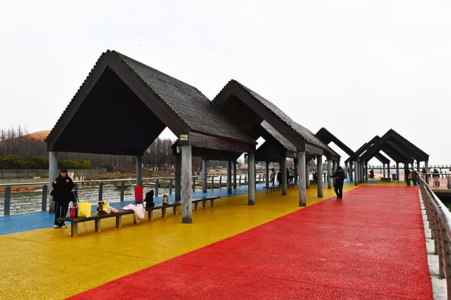亲水木栈桥是滆湖公园的一大亮点,站在长长的栈桥上,美丽的滆湖一览无遗。记者10日了解到,这处“老网红”如今变身“彩虹桥”,正以靓丽新姿迎接游人。