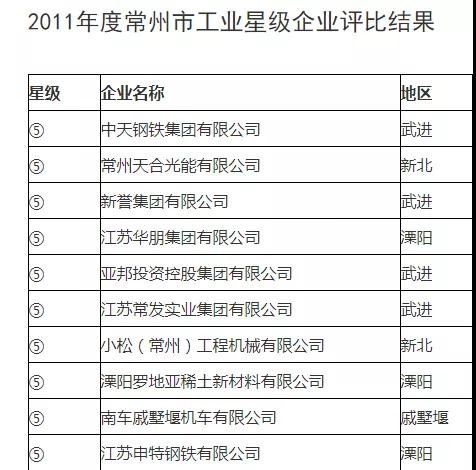 下面是10年前2012年常州市表彰的2011年度五星级企业名单中的前10名: