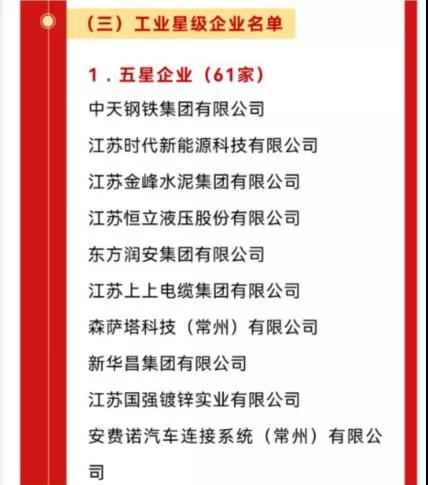 下面是今年即2022年常州市表彰的2021年度五星级企业名单中的前10名: