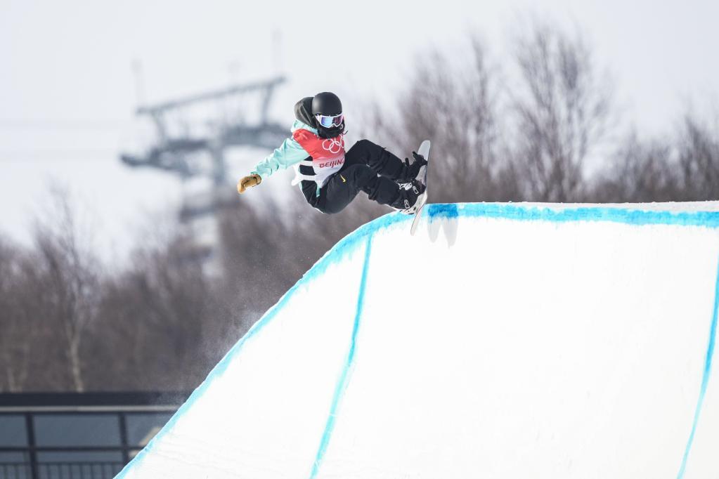 2月10日,北京2022年冬奥会单板滑雪女子U型场地技巧决赛在张家口云顶滑雪公园举行,中国选手蔡雪桐在比赛中。新华社记者吴壮摄