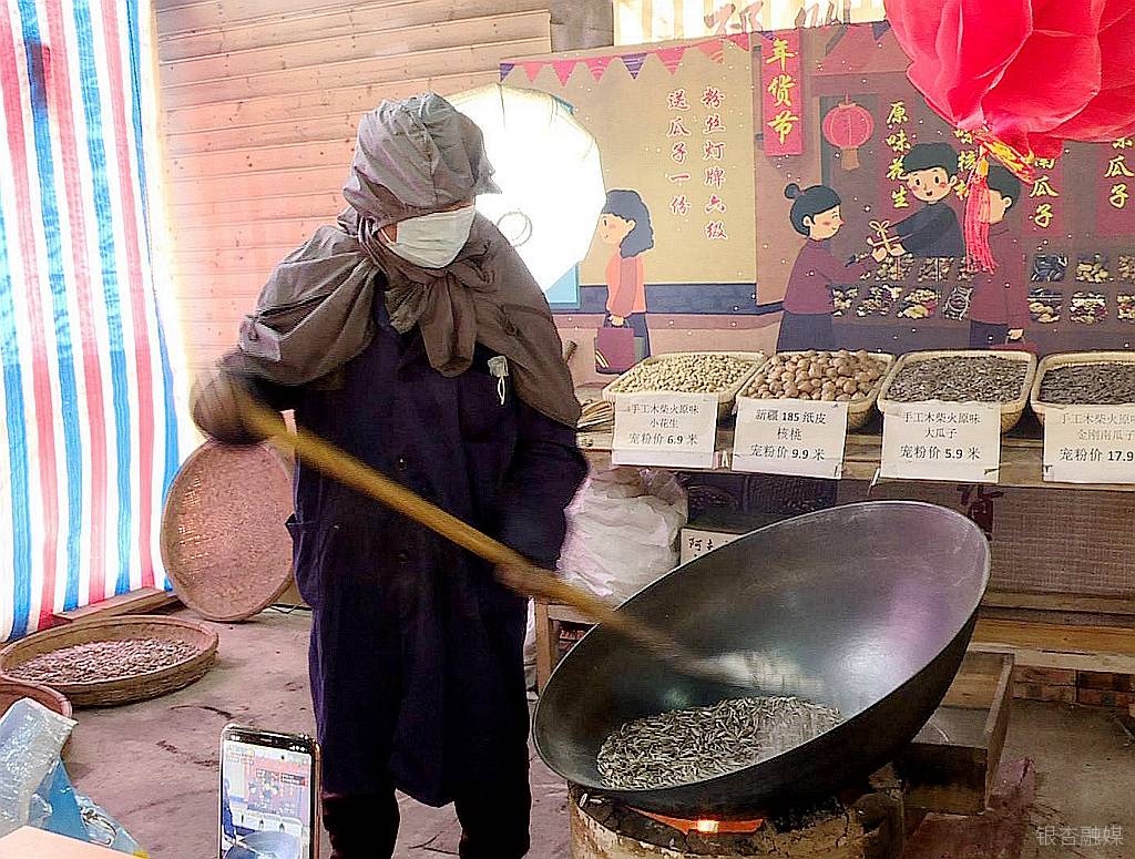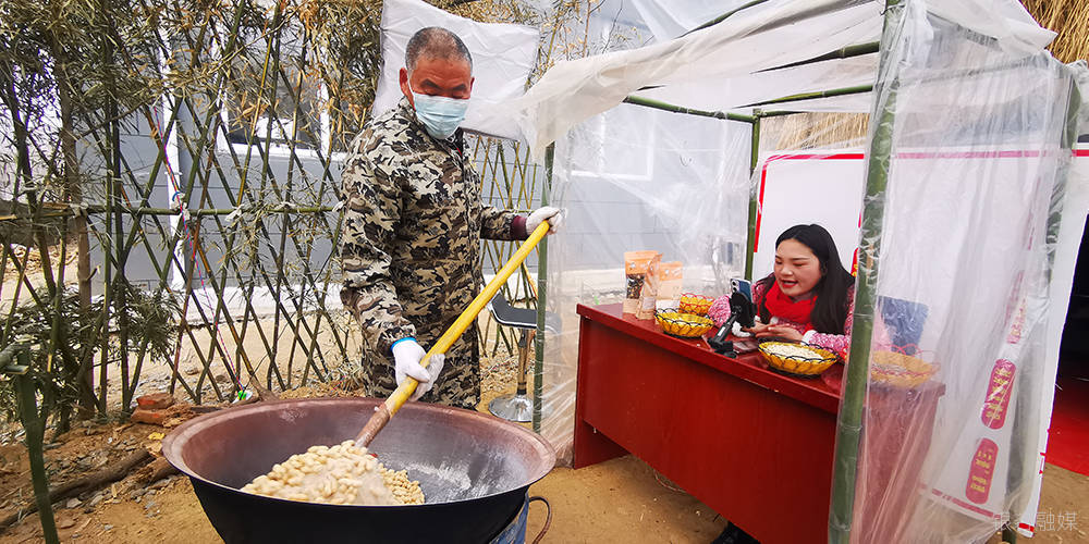 在徐州邳州市邹庄镇古宅村,一场别开生面的炒货直播正在热闹进行。伴随着主播的讲解声,工作人员进行现场炒制,木柴火、大铁锅,最传统的制作方式让现场香飘四溢。