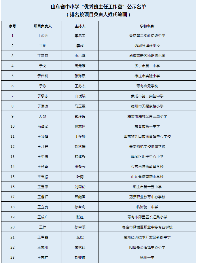 附件:山东省中小学“优秀班主任工作室”公示名单
