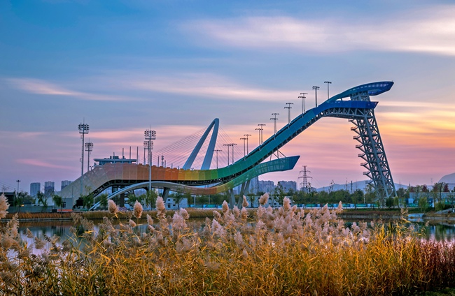 ▲坐落于首钢老工业园区北区的首钢滑雪大跳台(图片来源:新华社)