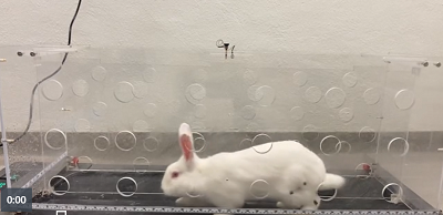 一只兔子在跑步机上跳跃,刺激其“生物改造膝盖”中的压电电荷。充电会促进新鲜、坚固的软骨再生,使膝盖像受伤前一样强壮和功能齐全。 图片来源:阮清(Thanh Nguyen)/康涅狄格大学