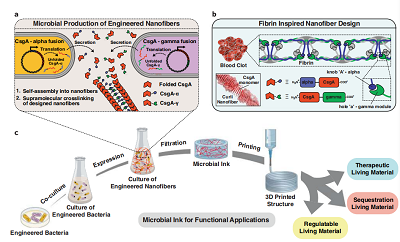 此次,包括美国东北大学、弗吉尼亚理工学院暨州立大学、哈佛大学Wyss生物启发工程研究所在内的联合团队,报告了用大肠杆菌制成的一种高级微生物墨水,这种大肠杆菌经过基因工程改造,能产生纳米纤维。这些纳米纤维可以进行浓缩并打印出3D结构。