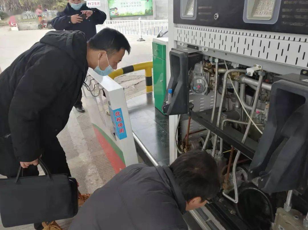 在七里沟加油站,检查人员详细查看了该加油站从业人员资质,管理制度、岗位操作规程、事故应急预案和安全设施等内容,现场发现隐患3条,责令企业限期整改。