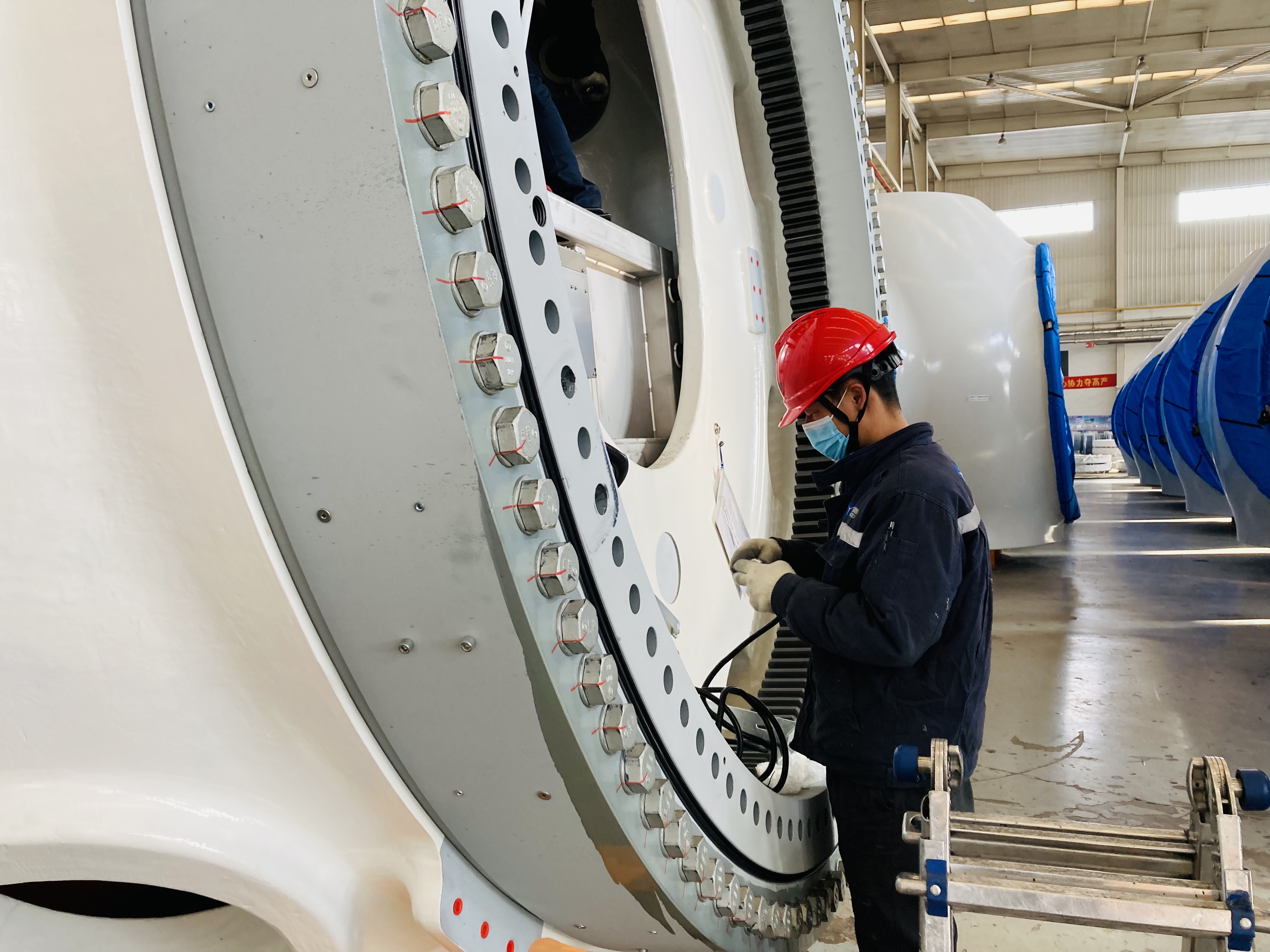在张家口市张北县运达风电有限公司的厂房内,一个个风车零件整齐排放,工人正在忙碌地将其组装,要不了多久这些风车就会矗立在张北的草原之上,成为“绿电”的源泉。运达风电制造中心生产主管白海江介绍,风力发电机由塔筒、叶片、主机、轮毂四个部分组成。风力带动叶片转动,再通过轮毂将能量传递到主机带动发电机工作,这就是风力发电的基本原理。