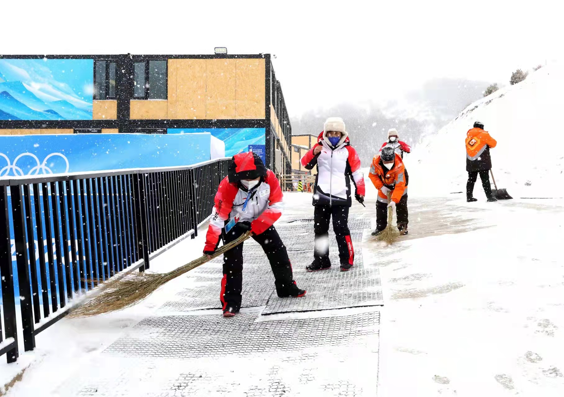 云顶场馆群以雪为令,于2月11日启动应急预案,铲冰除雪团队24小时不间断巡查,体育、山地运行等各领域工作人员凌晨就已紧急出动,分兵把口清扫降雪,保障场馆正常运行。