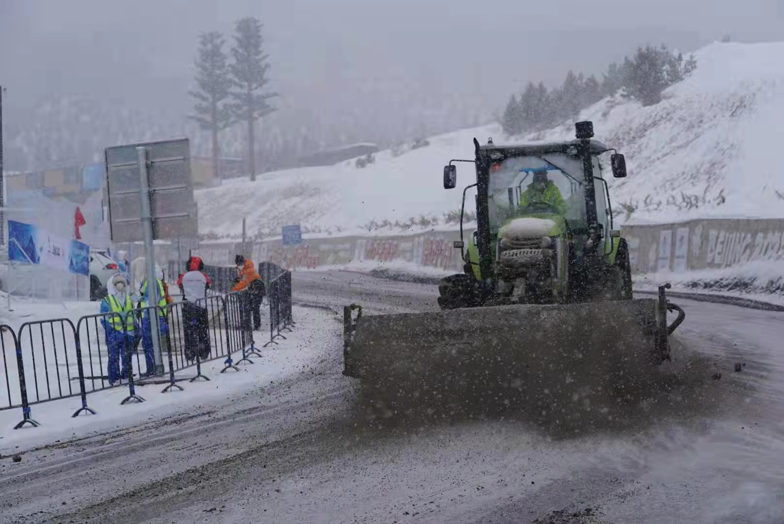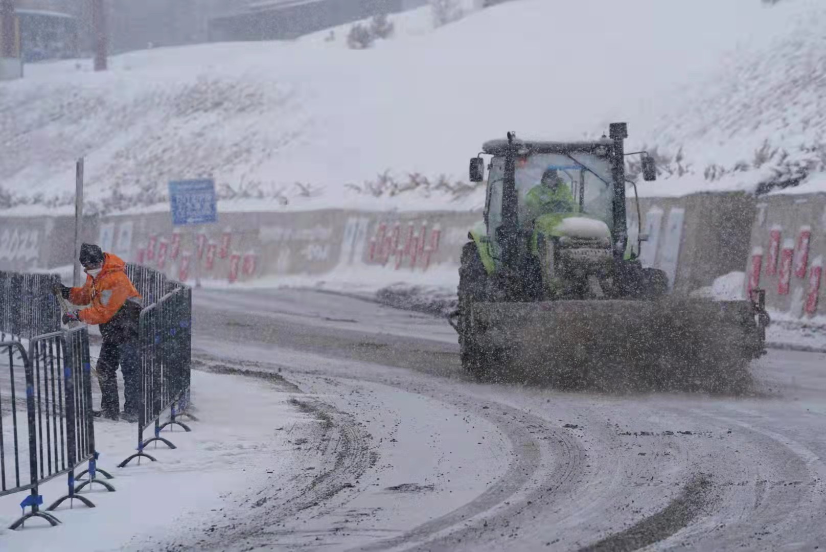 在古杨树场馆群,国家跳台滑雪中心技术路陡坡路段,几台小型大马力除雪设备正在有序作业。这里的除雪负责人胡靖华,有着近30年的除雪经验。他说,赛区场馆前道路坡度较大,给除雪作业带来一定困难,除雪团队专门调配了15台小型大马力除雪设备负责这里的除雪,全力保障赛事顺利进行。