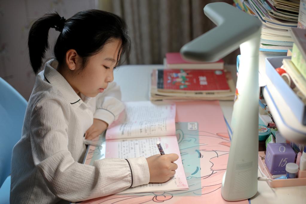 河北省衡水市一名四年级小学生正在专心完成作业。陈康摄