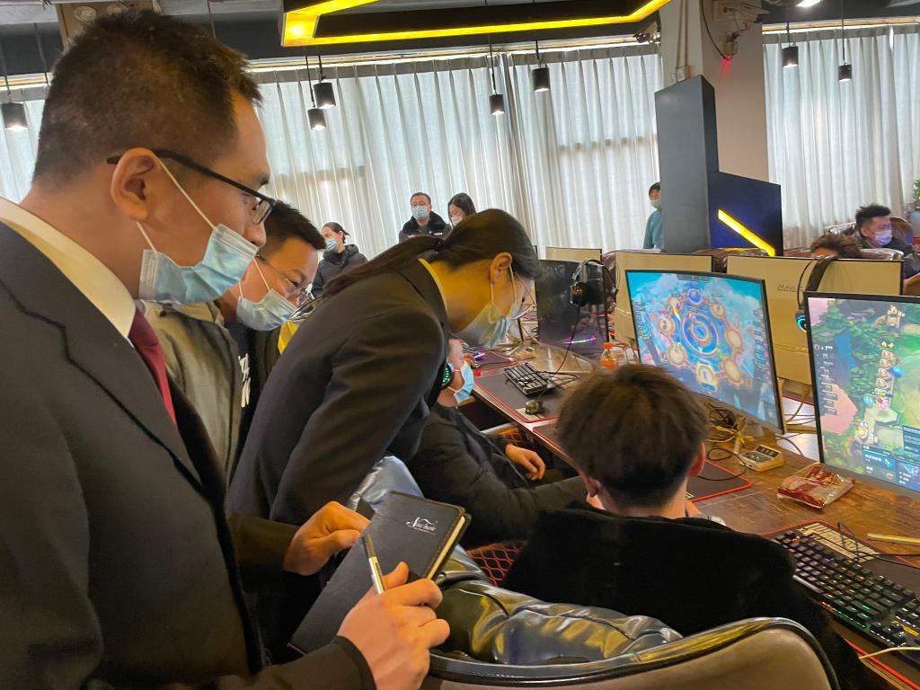河北省邯郸市涉县人民检察院未检检察官对上网人员进行网络防沉迷现场宣教。姚莉摄