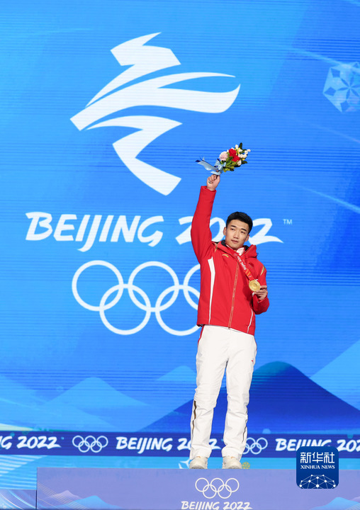 2月12日,冠军中国选手高亭宇在奖牌颁发仪式上。新华社记者程婷婷摄