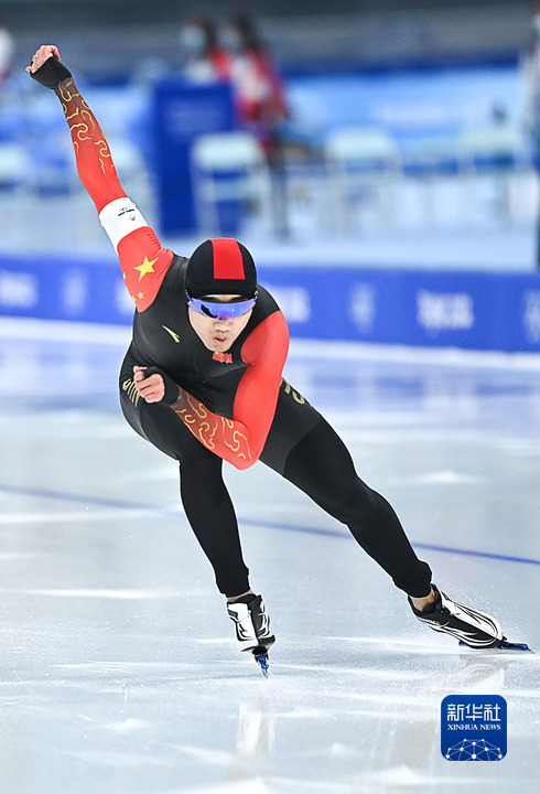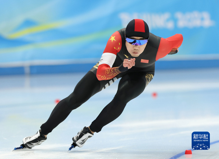 2月12日,中国选手高亭宇在北京冬奥会速度滑冰男子500米决赛中。新华社记者熊琦摄