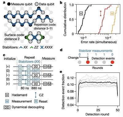 量子计算的一个目标就是以指数级倍数超过传统经典计算机的速度,去执行特定计算任务。但量子计算机和经典计算机一样,很容易出现由底层物理系统“噪声”引起的错误。行之有效的解决办法,是在计算机操作中加入一种能在错误出现时发现并纠正这些错误的方法。一种量子纠错方法使用量子纠错码,通过将多个量子比特(量子信息的单位,对应经典计算机的比特)当作一个逻辑量子比特,从而在不破坏逻辑量子比特中存储信息的情况下,发现并纠正错误。但为了实现量子计算的潜力,逻辑错误率必须保持在很低的水平。