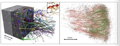 研究团队从人类大脑皮层的颞叶开始取样,为获得视觉清晰度,还对其染色、涂上树脂,再切成大约5300个切片,每个切片的厚度约为30纳米(nm)。团队使用扫描电子显微镜对这些切片进行成像,其分辨率达4纳米——这创造了2.25亿张二维图像,再将它们拼接成一个三维结构。