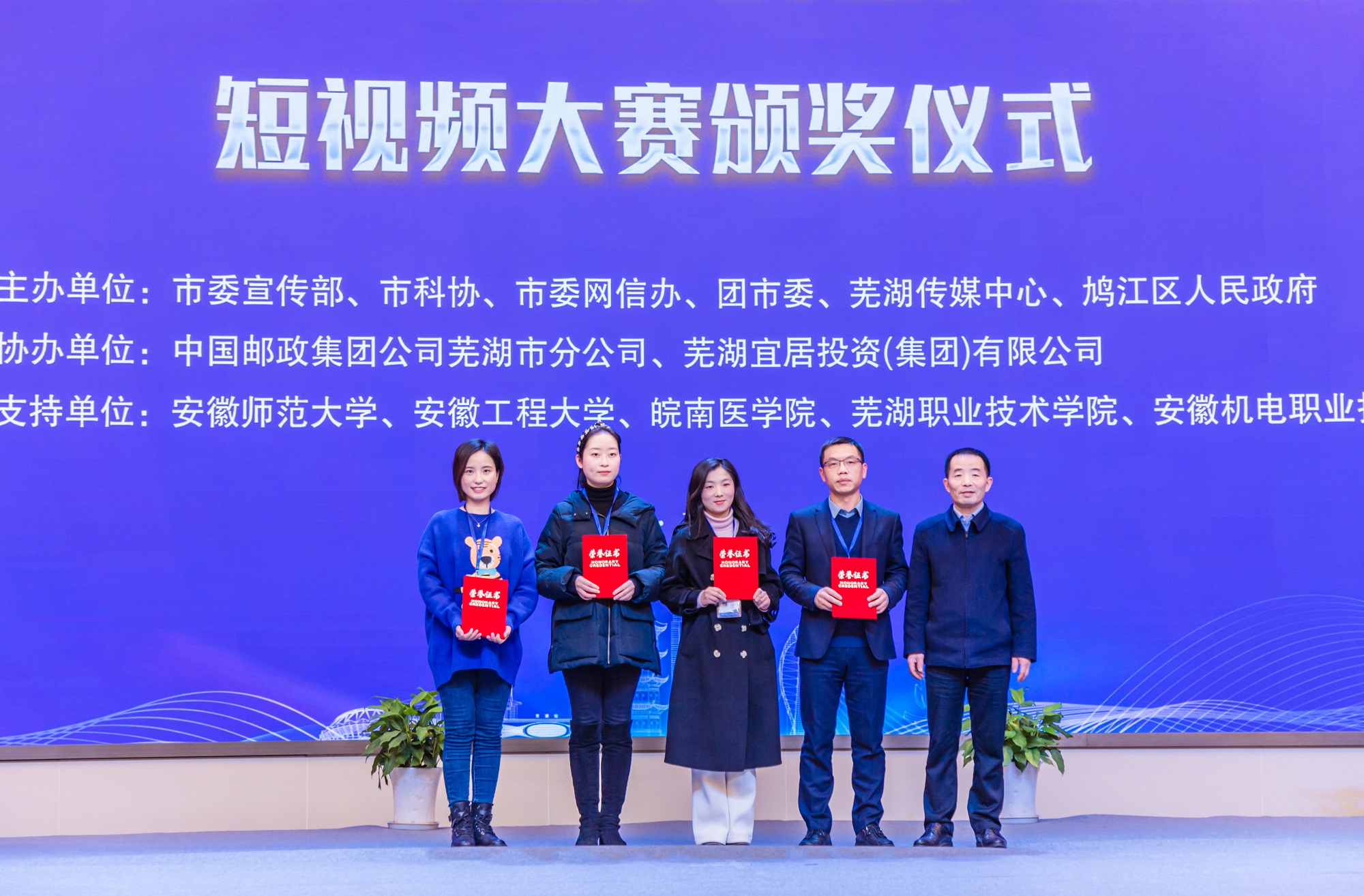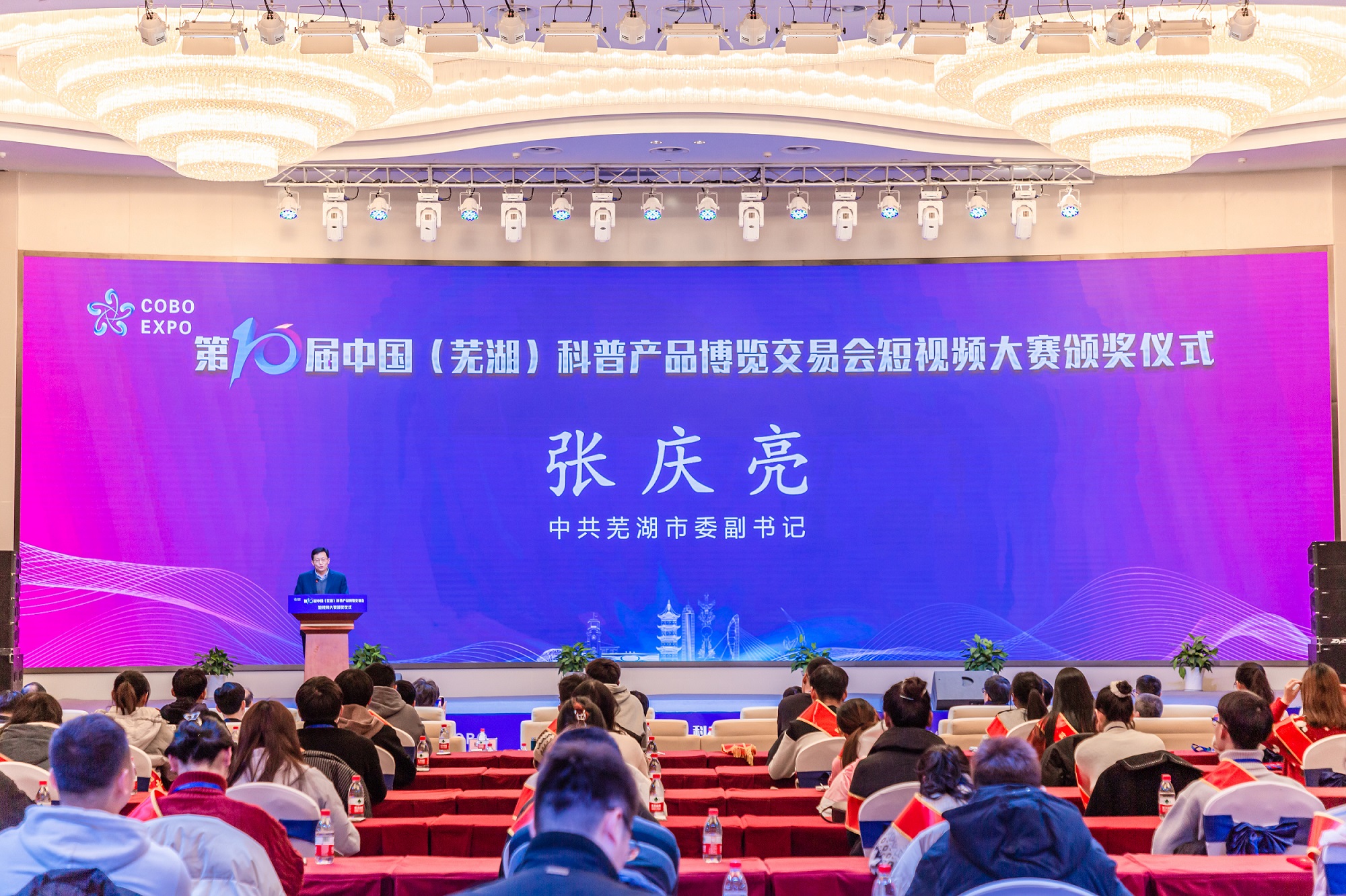 张庆亮代表市委向获得奖励的单位和个人表示祝贺。他指出,科博会是推动安徽和芜湖创新发展、开放发展的重要平台,希望各单位继续支持并参与各项活动,做好复盘总结、务实提升,努力把明年的科博会办得更好;希望各媒体继续加大宣传推介,紧抓不放、持续用力,全媒体、全方位讲好科博会精彩故事;希望广大学子踊跃创新创业,芜湖将为每一位大学生在芜创业就业给予最贴心、最给力的支持。