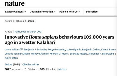 据英国《自然》杂志近日发表的一项人类演化研究,澳大利亚科学家团队报告了在南非一内陆遗址发现的早期现代人复杂行为的证据。该研究结果对目前的主流观点——认为智人的复杂行为最早出现在海岸环境提出了挑战。