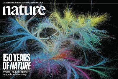 这项分析为纪念1869年11月4日《自然》创刊号付梓迄今150年,该分析还挖掘了88637篇《自然》论文各自之间的联系,并以网络的表现形式发表于周年特刊的封面。