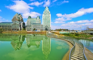 “两个公园是贵阳大数据科创城中心公共绿地和居民社会生活中心,也是贵安新区新晋的地标性公园。”中交贵州海绵城市投资建设有限公司副总经理钱东初说,公园按照“自然、生态、和谐、人文”的理念,构建了自然生态的湿地水系景观、完善的慢行交通及绿道系统,提供了多样化的游憩服务及完善的配套设施,有效提高了贵安新区的水生态环境保护能力,是集科普、休闲、文化、生态于一体的综合性城市湿地公园。特别是月亮湖公园,整体结构布局强化了“七情八境”的融入,将“山、水、花、乡、亲、友、爱”之七情与 “团圆、等待、相逢、漂泊、表白、独处、告别、梦境”之八境载于公园各个区域,形成“处处悬情、处处是景、触景生情、情在境中”的意境,打造“望得见山、看得见水、记得住乡愁”的公园景观。