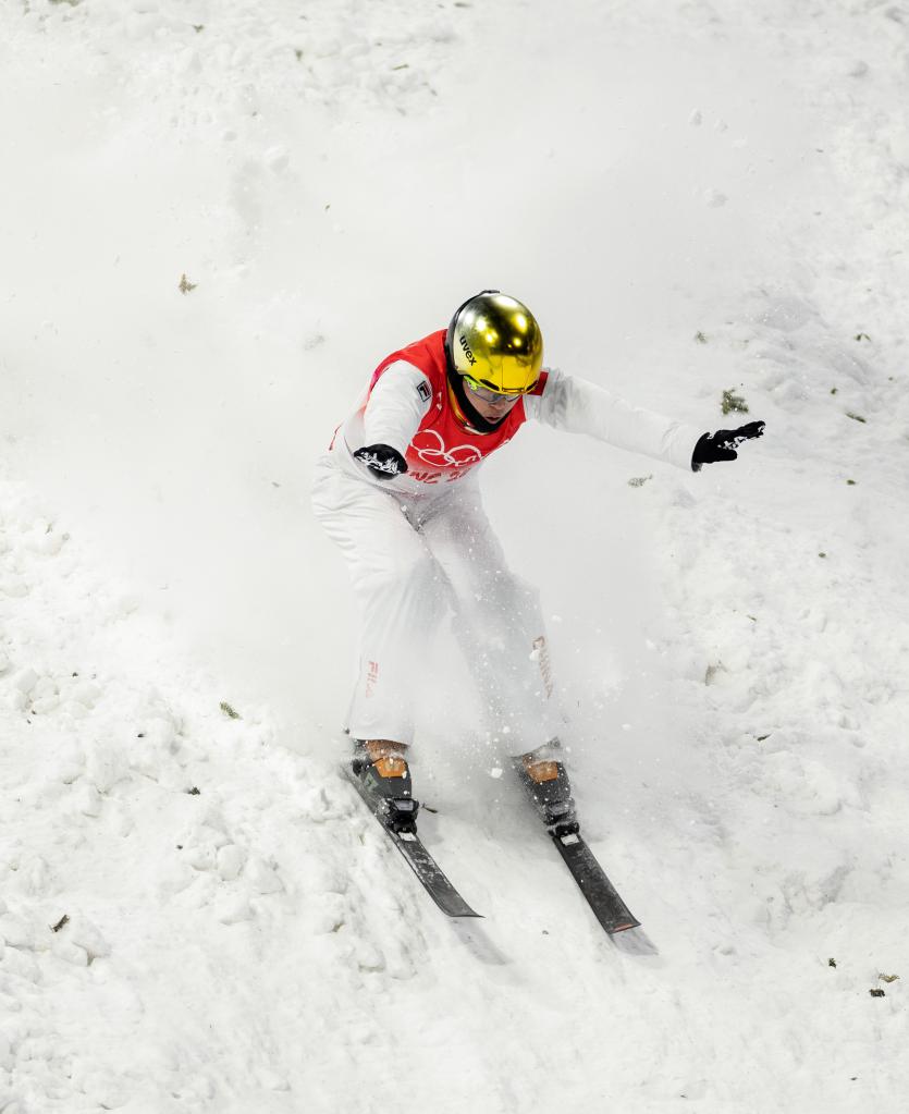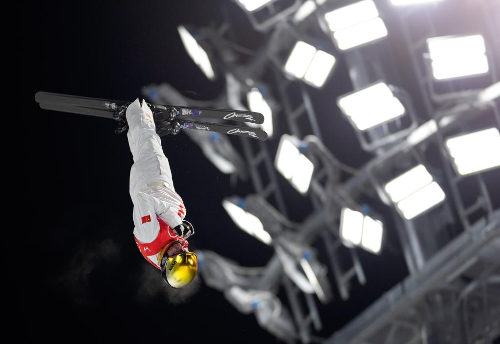 2月15日,中国选手齐广璞在北京冬奥会自由式滑雪男子空中技巧资格赛中。新华社记者 费茂华 摄