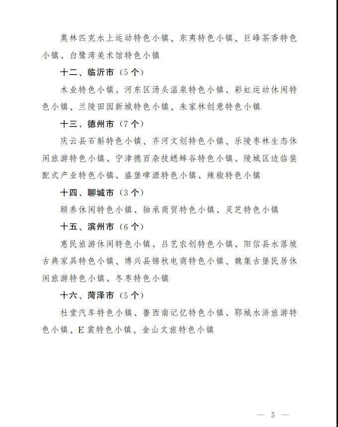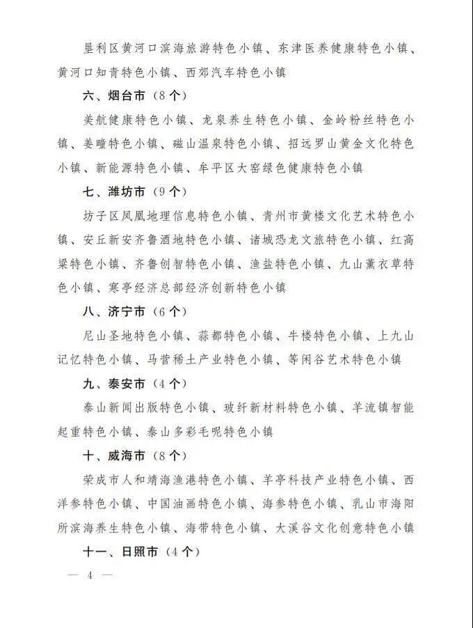 关于公布山东省特色小镇清单的通知