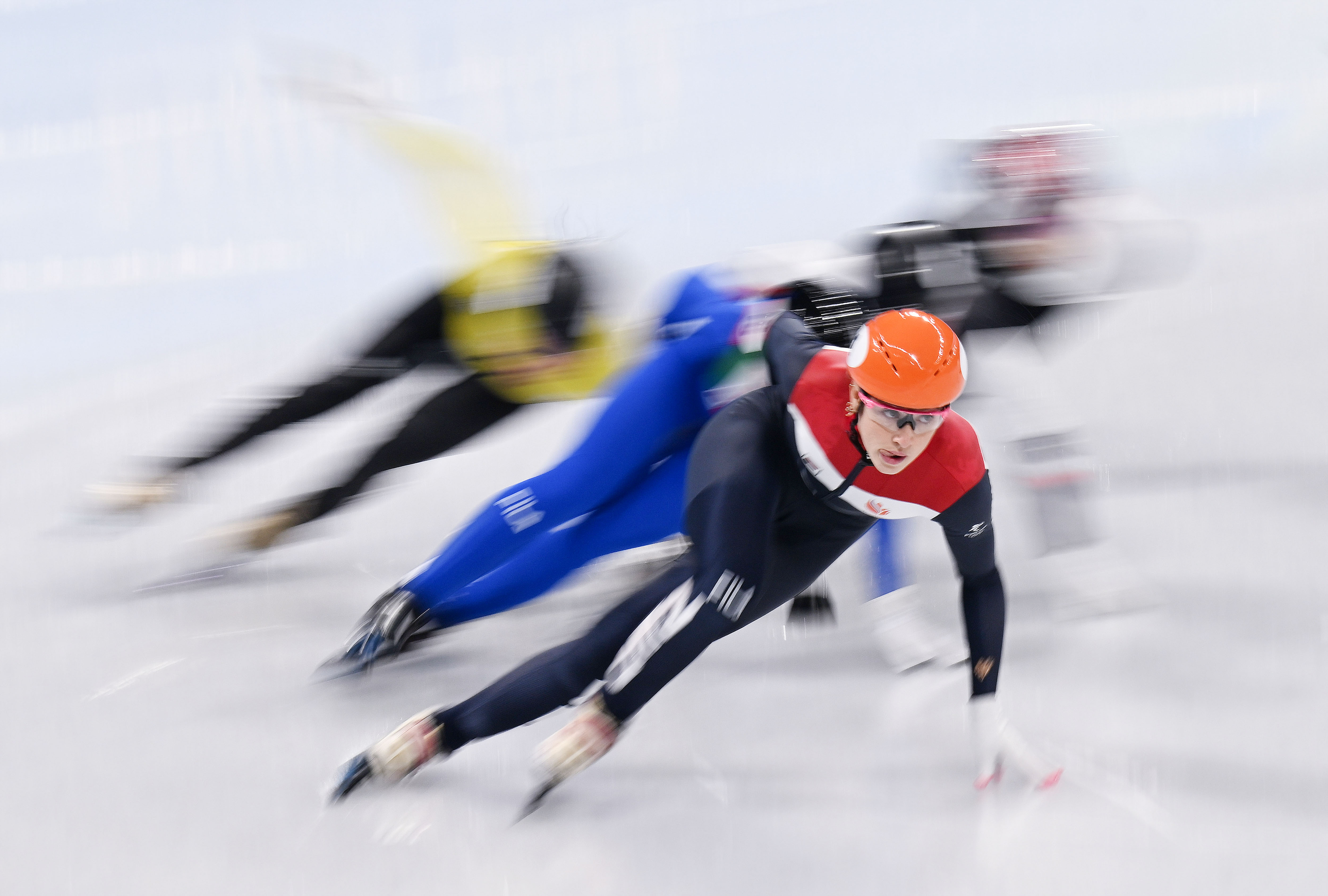 2月11日,荷兰选手苏珊娜·舒尔廷(前)在北京冬奥会短道速滑女子1000米决赛中夺冠。新华社记者鞠焕宗摄