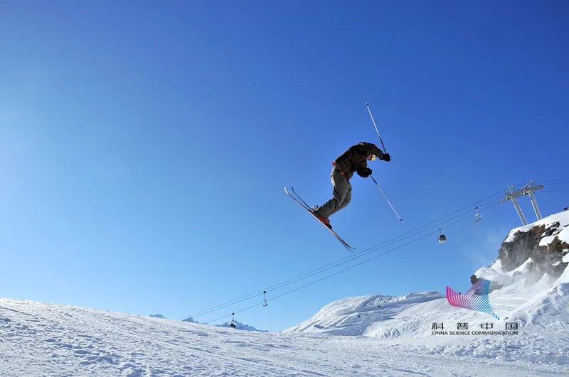 运动员起步沿着雪地出发时,便具备了一个恒定的角动量。但在腾空时,身体蜷缩起来之后降低了转动惯量,获得了更大的旋转速度,从而保证翻转更多的圈数,完成更高难度的动作。在即将落地时,为了保证落地平稳,需要展开双臂,增大转动惯量,减低翻转的速度。