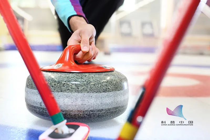 其次,掷壶员在出手前会轻轻拨动冰壶的壶柄,使其绕自身发生旋转。如果逆时针旋转,那么它会在前进过程中微微向左弯曲,如果顺时针旋转,则会向右偏转。