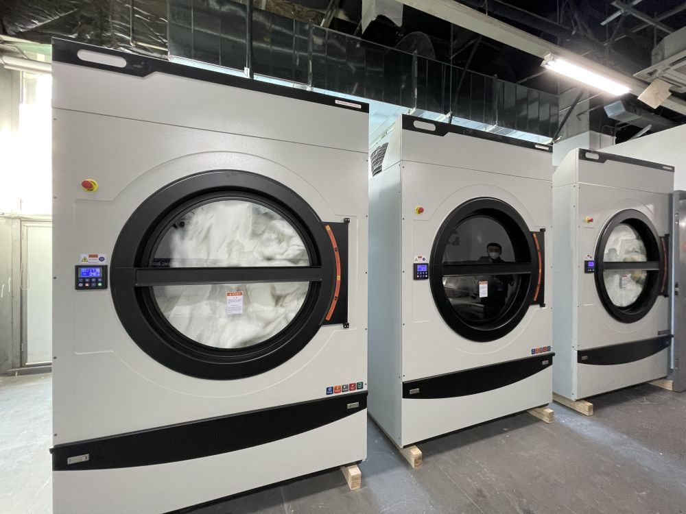 衣物洗涤干净后,将被投入温度达60至80摄氏度的烘干机,进行80分钟的高温烘干、杀菌消毒。