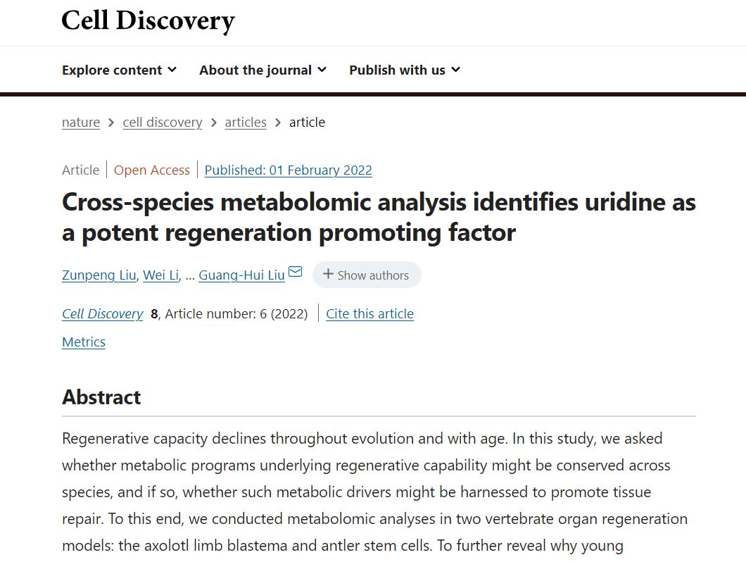 “我们认为,单一代谢物尿苷能够促进哺乳动物多器官组织的再生修复过程。”张维绮解释,而且年轻人血液中与老年人血液相比具有更高的尿苷含量也侧面证明了这一点。