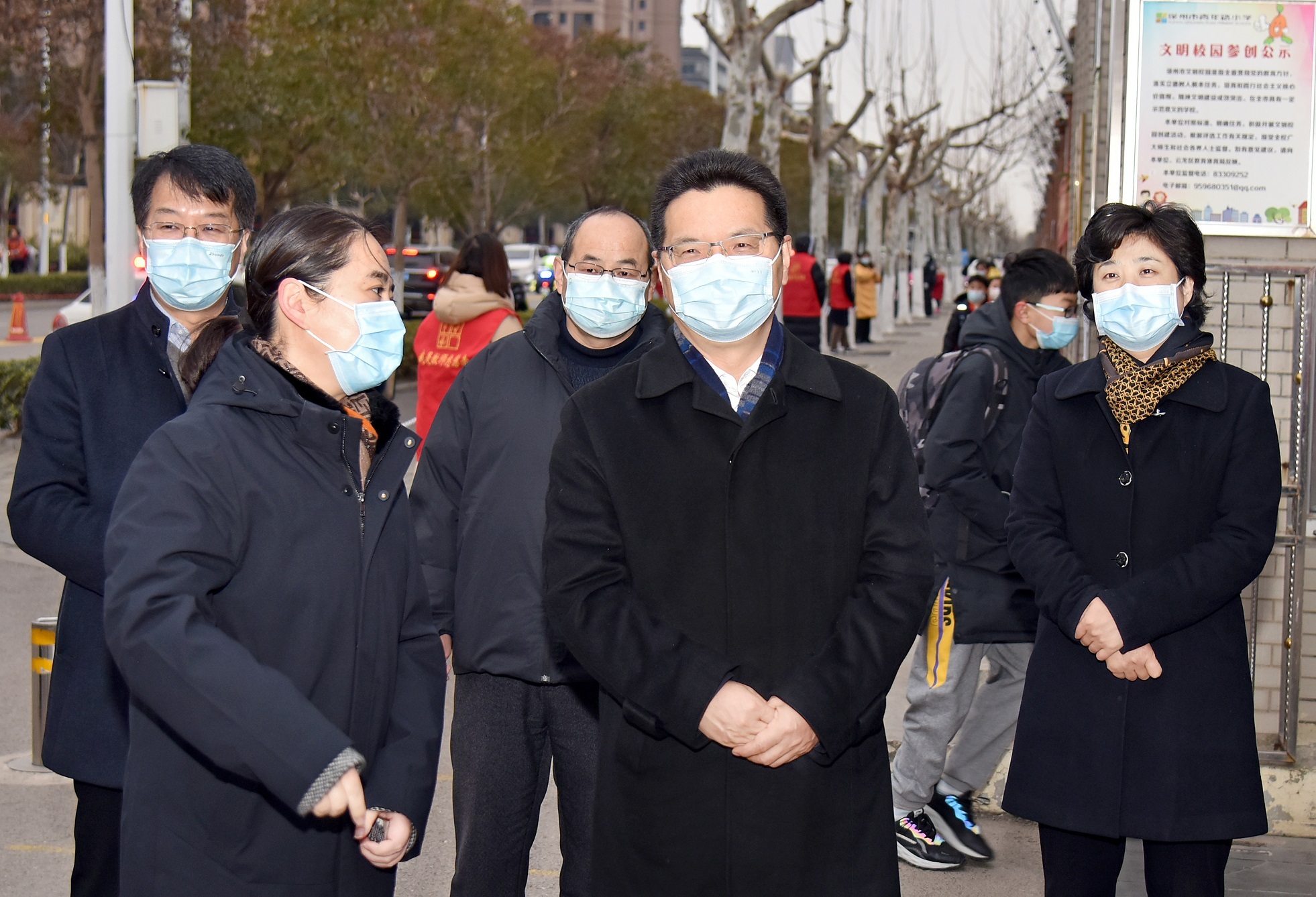 王剑锋一行到达青年路小学新城分校时,学生们正排着整齐的队伍,按要求规范佩戴口罩,保持一米的间隔有序进入校园。在了解学校入校管控情况后,王剑锋详细询问了学校疫情防控机制建立和落实、发热学生应急处置、校园日常教学管理等情况,对学校疫情防控工作给予肯定。他强调,学校要始终把师生的身心健康和生命安全放在首位,严格做好高风险地区返徐师生管理工作,坚决防止高风险人员返校,确保校园环境安全稳定。