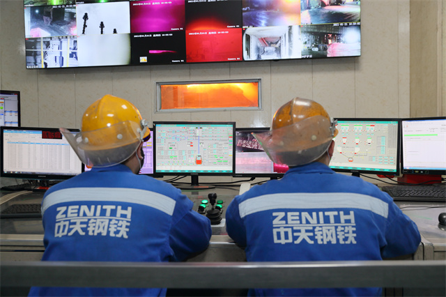 在全国首批5G试点示范数字工厂——三炼钢“5G数字工厂”主控室内,2名炼钢工人正通过电脑画面监控着整个炼钢区域的运行情况。过去的一年,中天钢铁集团三炼钢实现降本超5000万元,自主攻克5项工艺难题,多项技经指标已位居全国同类企业前列,生产管理再上新台阶。