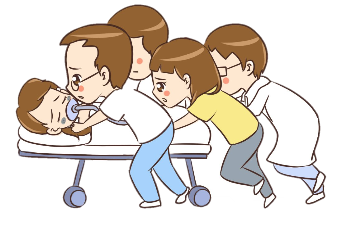 5. 第五步——送往医院,协助120将患者抬至担架,头部稍稍抬高,偏向一侧